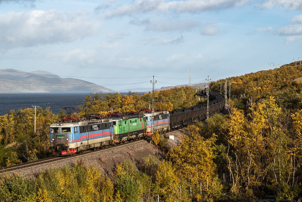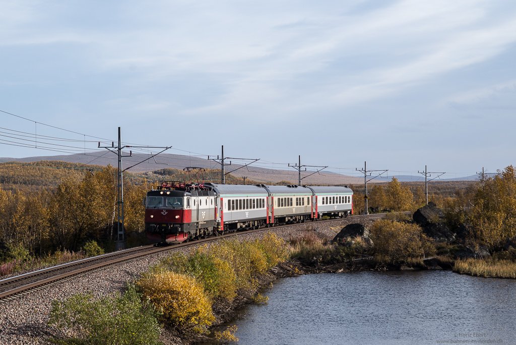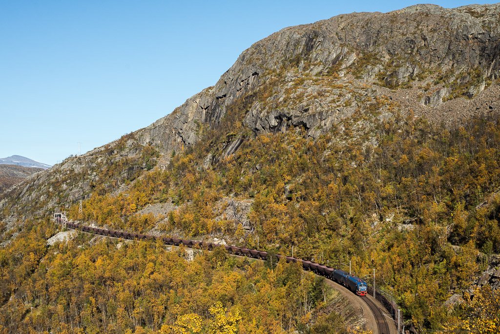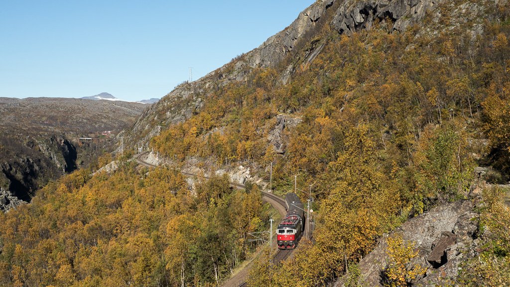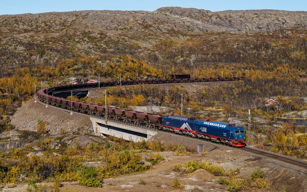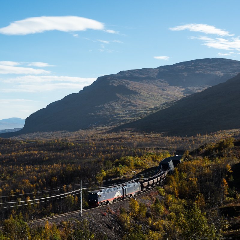 Dreiteilig waren diese Loks jedoch weiter auf der Erzbahn in Lappland zu den Häfen Luleå und Narvik im Einsatz. Hier, bei Tornehamn, gab es einst eine Barackensiedlung der Bahnbauarbeiter, der rallare; den Friedhof der dort an Typhus Verstorbenen kann man noch heute besuchen.  SJ Dm3 1208+1233+1207.