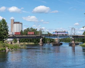 Norrtåg X62 008 (Rst 7409) an der Bro över Nätraån bei Bjästa