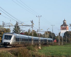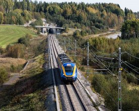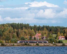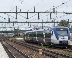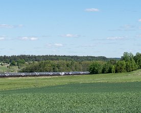 Railpool-Vectron 193 922 mit "Blå tåget" der Skandinaviska Jernbanor bei Vårgårda. Weitere und häufigere Konkurrenz soll es zwischen Stockholm und Göteborg ab 2015 mit MTR-Flirts geben.
